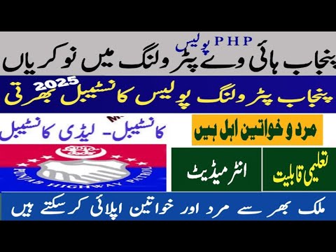 The Punjab Highway Patrol (PHP) has announced recruitment for Constable positions in 2025, with applications open until March 31, 2025.
